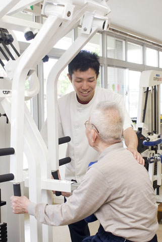 更に、機能訓練室には専用のトレーニングマシーン(パワーリハビリテーション機器)を設置し、理学療法士や作業療法士の指示のもとで、無理をしないで効果が得られる運動や楽しみながら身体を動かせるレクリエーションを行いより早期の在宅復帰に努めています。